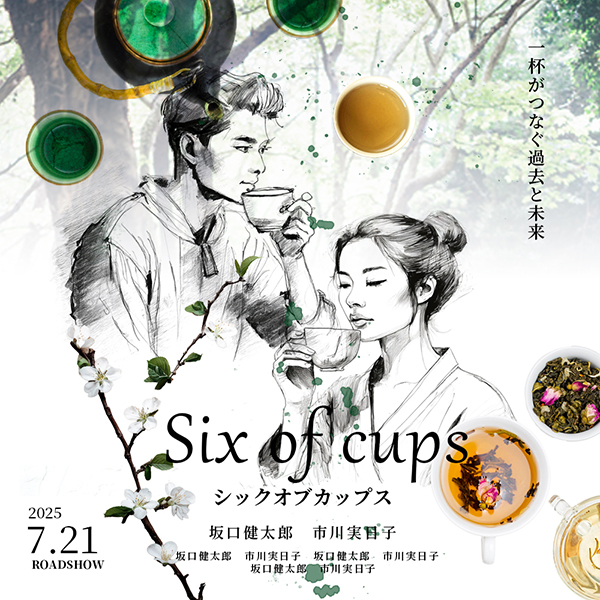 poster 映画「Six of cup」 「一杯がつなぐ過去と未来」というテーマのもと、文学的香のするショートムービーが封切られたという想定で作成。