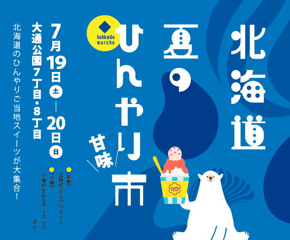 banner 北海道 夏のひんやり市 道内のメーカーを主体としたお中元などにもぴったりのお菓子を集めたフェアという想定で作成しました。